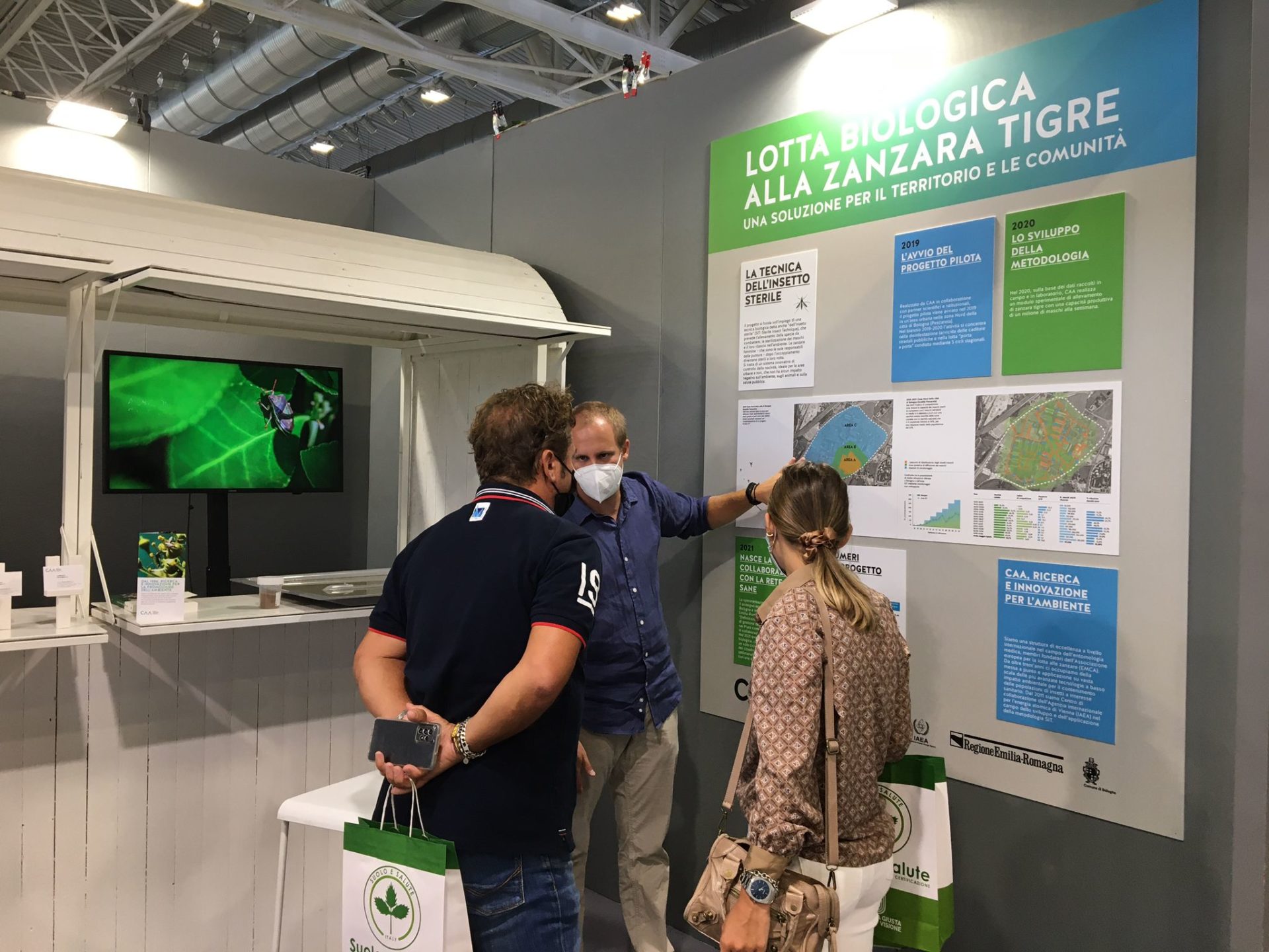 Gli entomologi di CAA S.r.l. si sono turnati nei 4 giorni di Fiera esponendo ai diversi curiosi ed interessati tutti gli argomenti legati alla Zanzara Tigre: ciclo biologico, allevamento massale della specie presso il modulo sperimentali di Crevalcore, tecniche di rilascio di maschi sterili, curiosità varie sulle zanzare.